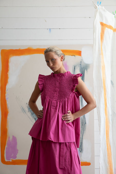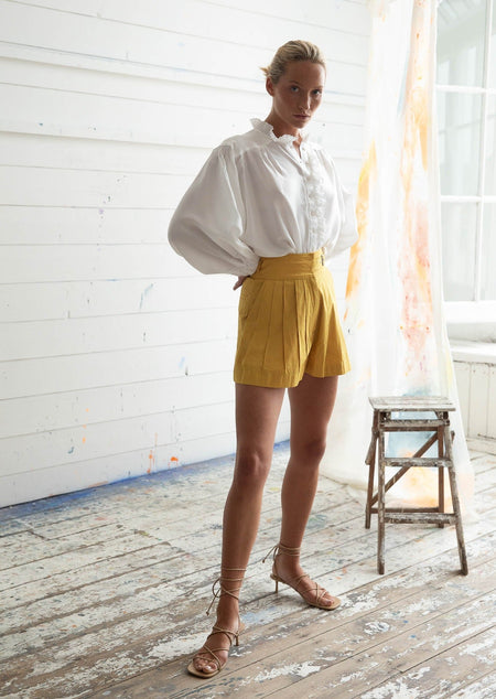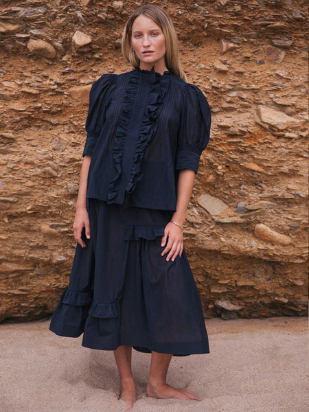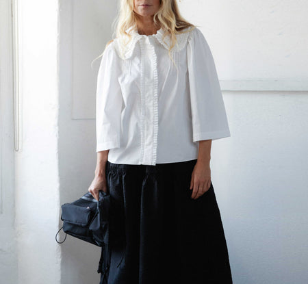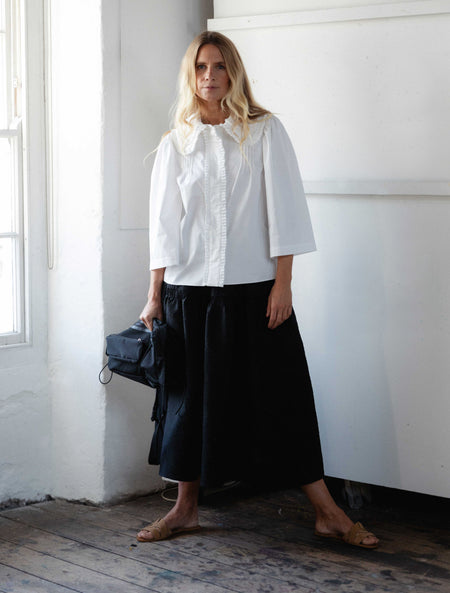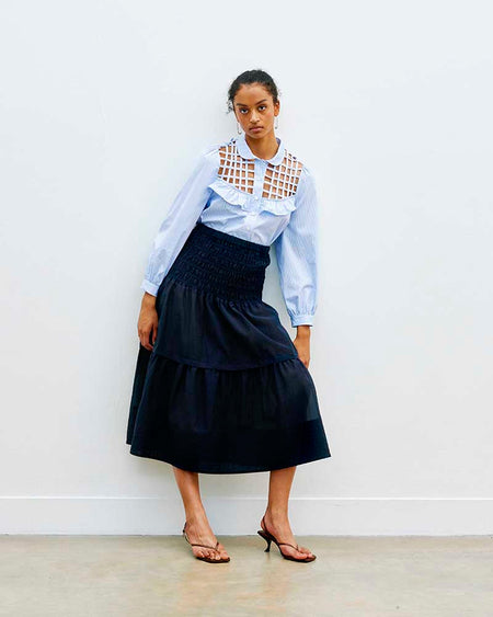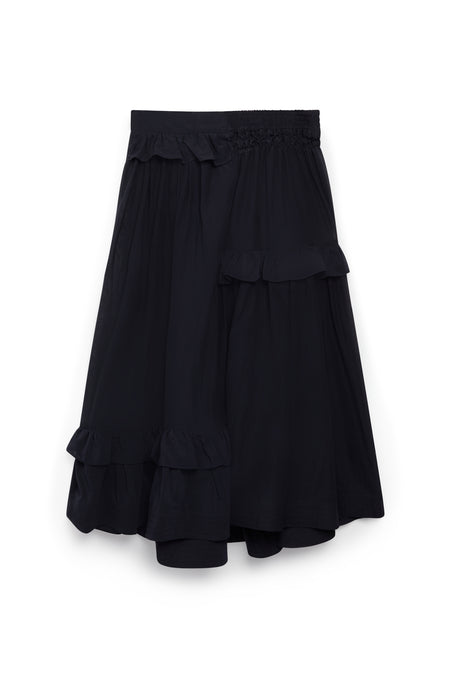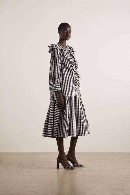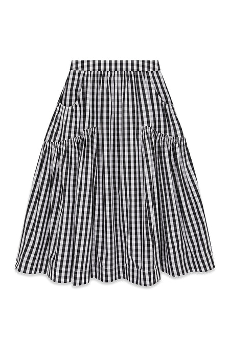 COTTON PLEATED SKIRT Black and White/Indigo Check