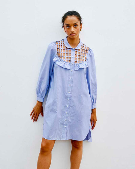 CROSS HATCH SHIRT DRESS Blue Stripe