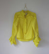 Timeless TEIJA blouse with pleated ruffle at neck and down the button fastening. The sleeves have gentle gather detail and draped cuffs. Crafted in light crips cotton. This piece will become your wardrobe statement piece for years to come.